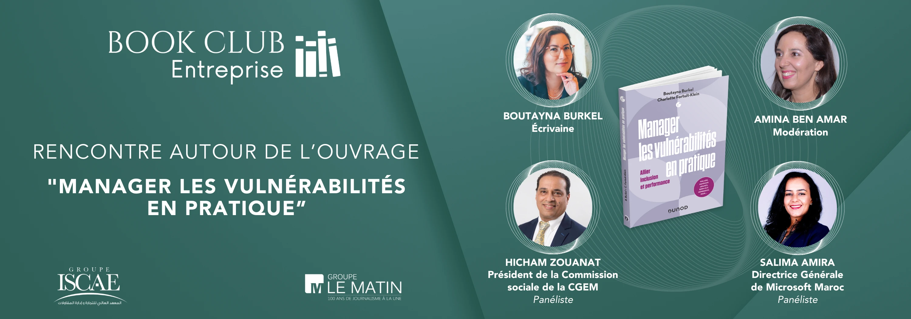 Groupe Le Matin a le plaisir de vous inviter à une nouvelle rencontre du Book Club Entreprises, consacrée à l’ouvrage de Boutayna Burkel, Manager les vulnérabilités en pratique : allier performance et bienveillance.